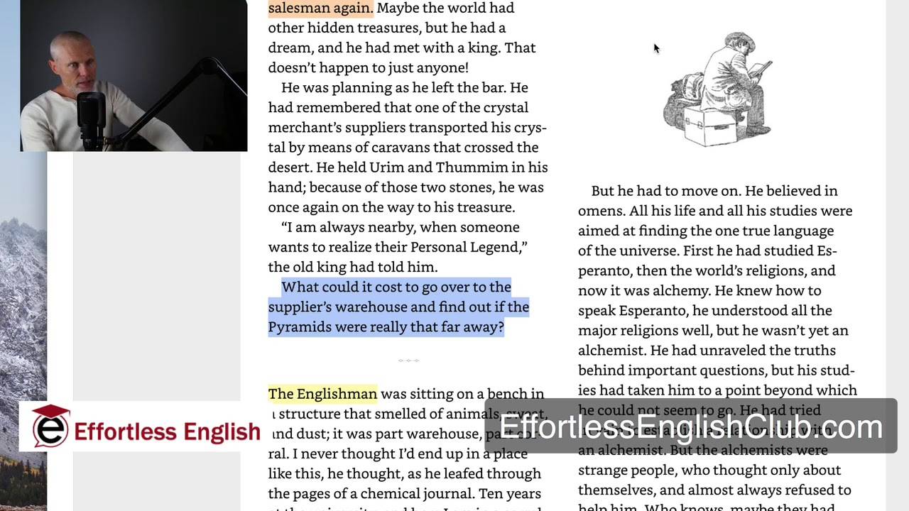The Alchemist, part 2. AJ explains and discusses the next section of the book by Paulo Coelho. This is followed by a LIVE discussion with Effortless English members.